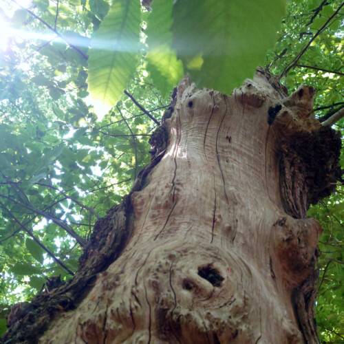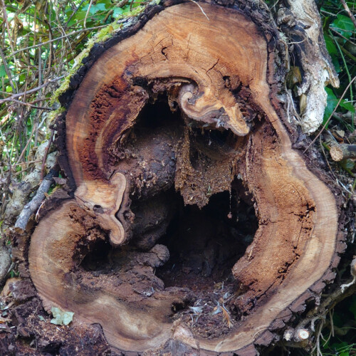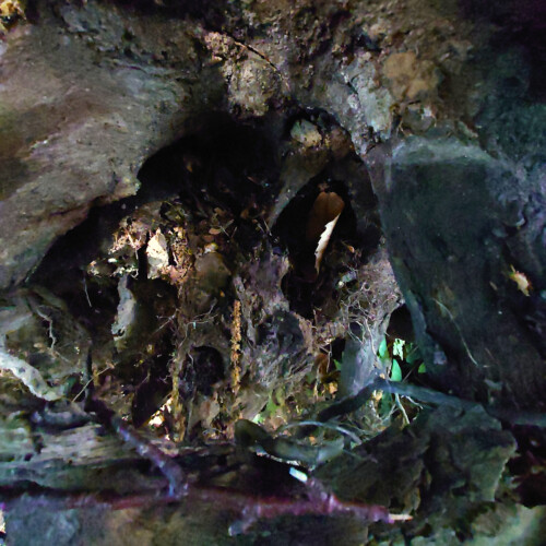Ich höre Insekten, die in ihm leben, Erdhummeln in den Wurzeln, Käferlarven, die sich durch das Holz fressen oder dort verpuppen. Auch Vögel und kleine Nagetiere sind zu hören – oft nur als kaum wahrnehmbare Spuren.